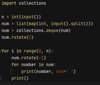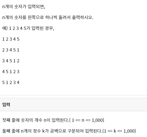 숫자를 로테이션한 결과를 출력한다.(단, 왼쪽으로만 돌린다.)